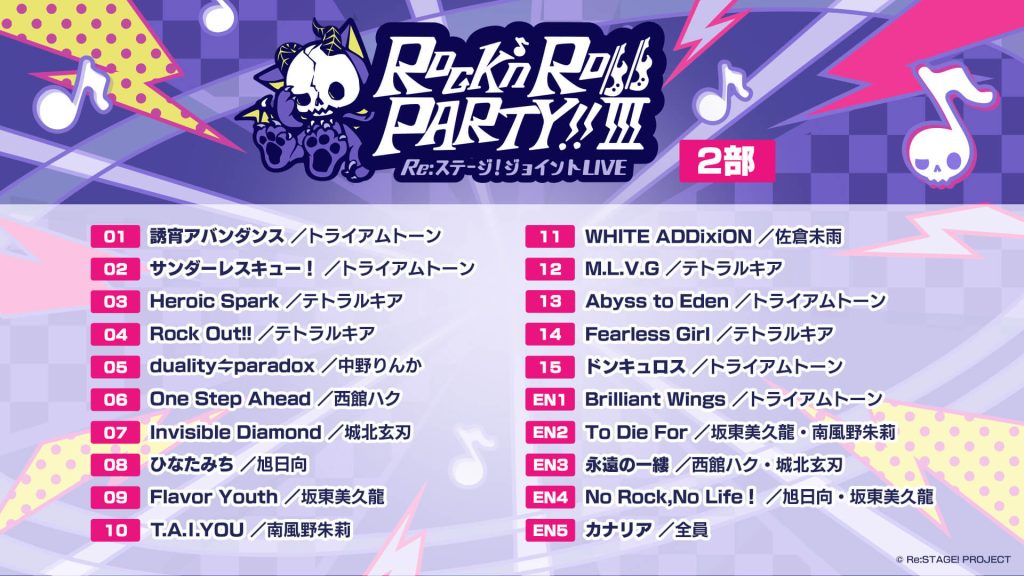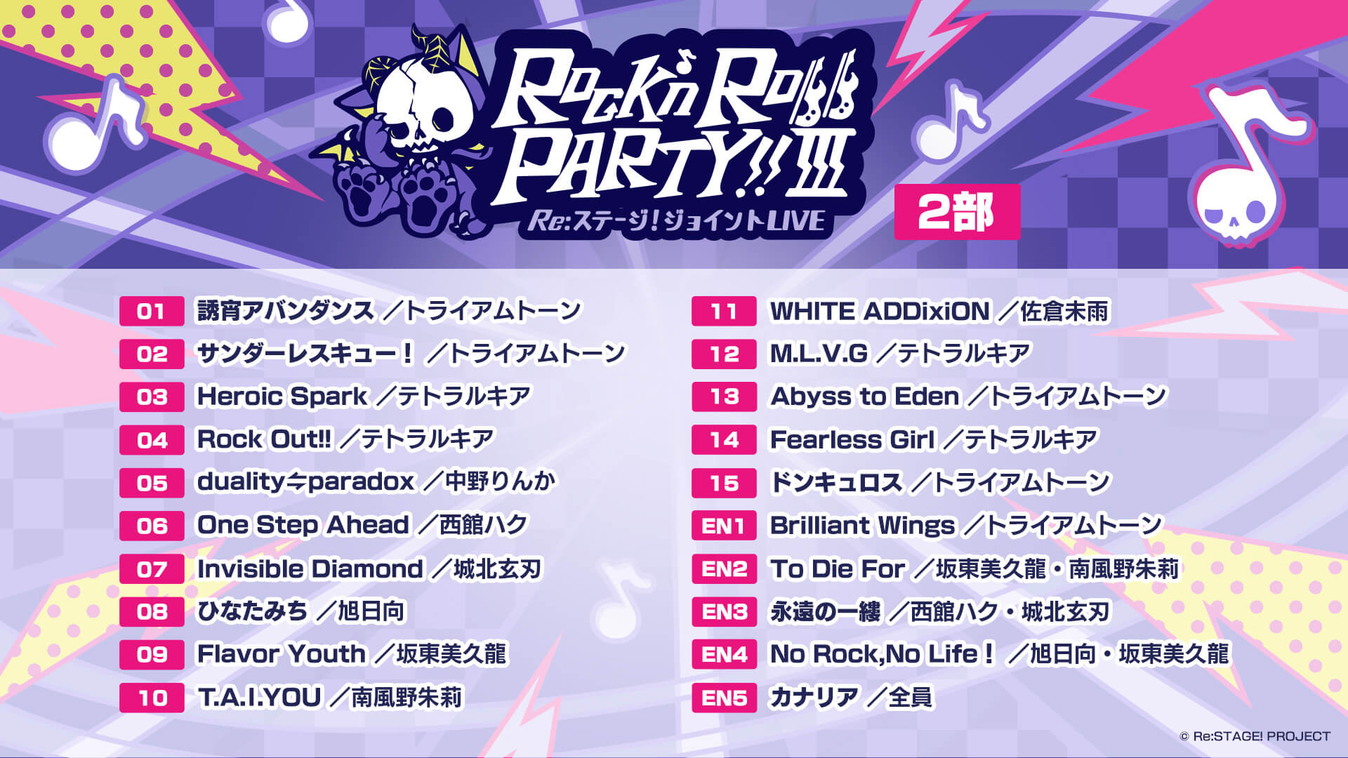 ▼『Re:ステージ! ジョイントLIVE!! -Rock’n’Roll PARTY!!Ⅲ-』のセットリストはこちら
